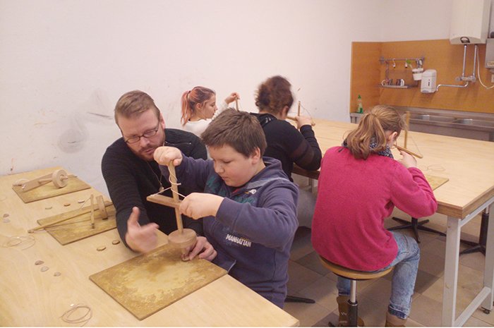 Er begann mit dem Besuch der Steinzeitwerkstatt.